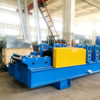 The machine is equipped with wear-resistant roller sets forged from imported German 1.2344 hot-work alloy steel. After vacuum quenching and 6-axis precision grinding, the roller surface hardness reaches HRC66, enabling stable processing of 1.8–4.8 mm Q420/Q460 high-strength carbon steel and zinc-aluminum-magnesium coated steel. Its servo-driven quick-change mold system completes specification switching within 10 minutes, supporting box beams with section sizes ranging from 160×85 mm to 420×210 mm, covering most mainstream heavy-duty rack specifications.