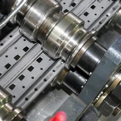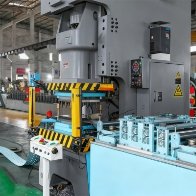 Efficiency is a defining feature of this machine, addressing the production bottlenecks that hinder manufacturers’ scalability. Equipped with a Siemens PLC control system and a 10-inch color touchscreen HMI, it automates the entire cold-forming workflow from material feeding to finished product output. A 6-ton hydraulic decoiler with automatic centering and tension control feeds coils stably, minimizing waste caused by misalignment. A multi-roller precision leveling unit eliminates coil warpage, ensuring flat blanks for consistent forming. The high-speed hydraulic punching module, capable of 35 punches per minute, creates precise mounting holes of various sizes, while the 26-group hardened roller forming system shapes the material in one seamless pass—avoiding the inconsistencies of multi-step processes. The servo-driven flying cutting device trims uprights to exact lengths (1-12m) without stopping production, boosting output to 12-20 meters per minute. This full automation reduces labor needs from 3 workers to 1, cuts labor costs by 70%, and enables manufacturers to meet large orders with lead times shortened by 40%.