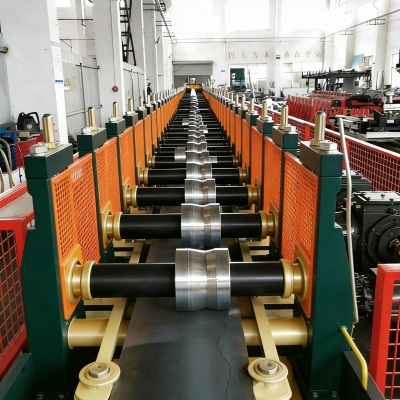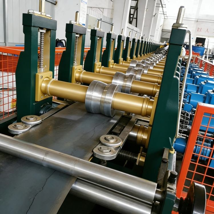 It supports a wide range of load-bearing beam materials, including 1.6–4.2 mm Q355B/Q420 high-strength carbon steel, hot-dip galvanized steel (zinc layer ≥ 180g/m²), and weather-resistant steel. The adaptive roller pressure control system (adjustable within 10–26 MPa) and circulating constant-temperature cooling technology preserve material toughness and anti-corrosion performance, making finished beams suitable for harsh environments such as cold storage, chemical warehouses, and outdoor stockyards.