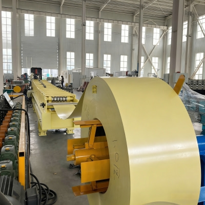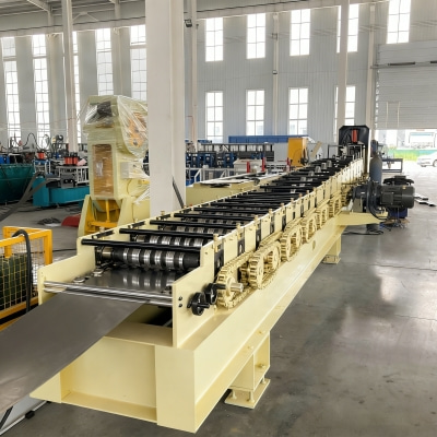 A precisão da máquina começa no sistema de alinhamento laser de entrada, que corrige automaticamente desvios na chapa de aço antes da conformação, evitando perfis deformados. Os rolos de conformação são fabricados em aço ferramenta Cr12MoV com tratamento térmico a vácuo, alcançando uma dureza de HRC 60-63 — um diferencial que garante baixa taxa de desgaste e manutenção mínima, mesmo após milhões de metros de material processado. A largura de trabalho ajustável de 120 mm a 500 mm permite a produção de longarinas em formatos C, U e tubulares ovalados, todos amplamente utilizados em racks de armazenagem de diferentes capacidades de carga.
