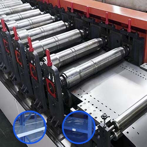 To allow flexible adjustment of rack levels, the upright roll forming machine is equipped with an integrated punching system. It can produce various hole patterns, including diamond holes, keyholes, or butterfly holes, with high positional accuracy. Hole spacing and upright length can be easily adjusted through the PLC control system, enabling fast changeover for different rack designs and storage capacities.