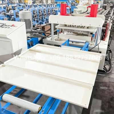 The machine excels in flexibility and efficiency, capable of manufacturing various shelf panel sizes with a thickness range of 0.5-0.8mm, and can be adjusted for thicker materials as needed. It integrates a full set of automated processes on one production line, including uncoiling, feeding, roll forming, punching, cutting, and bending, significantly reducing manual intervention and ensuring consistent production quality.